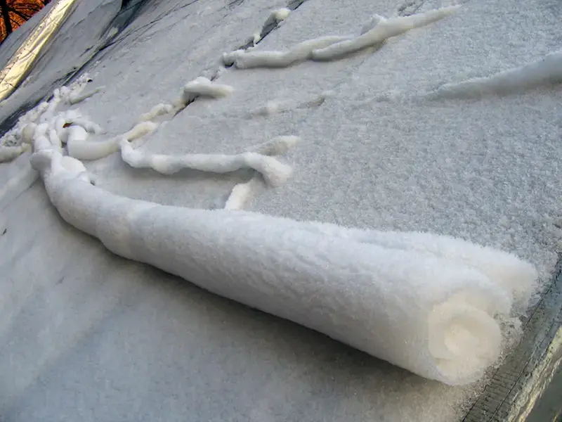 Snörullar kan bildas i töväder när kraftig vind river upp ett tunt täcke våt snö på ett hårt underlag, oftast skare.