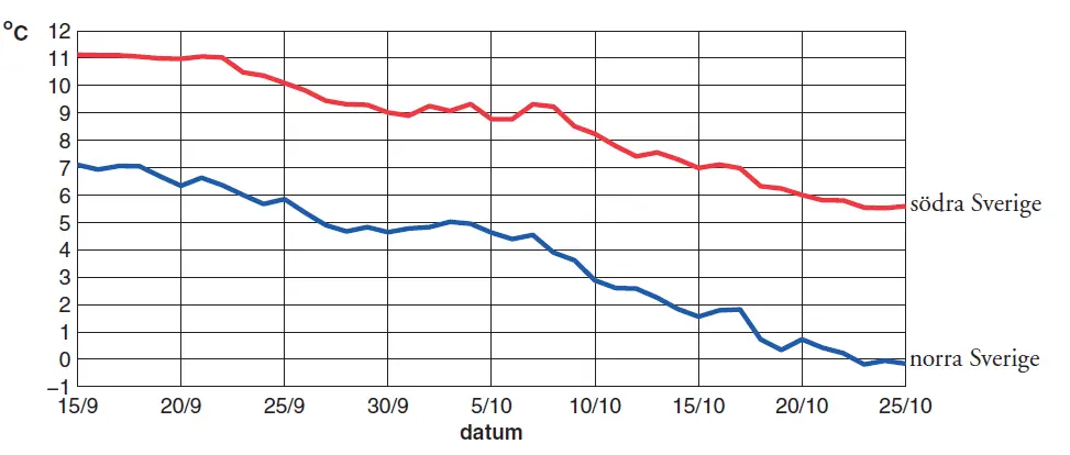 På båda kurvorna i diagrammet kan man faktiskt ana sig till en period med något högre temperatur i början av oktober.