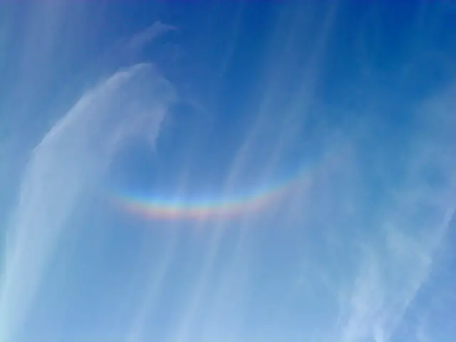 Cirkumzenitala bågen uppstår då ljus bryts i platta iskristaller och inte i regndroppar som för regnbågen.