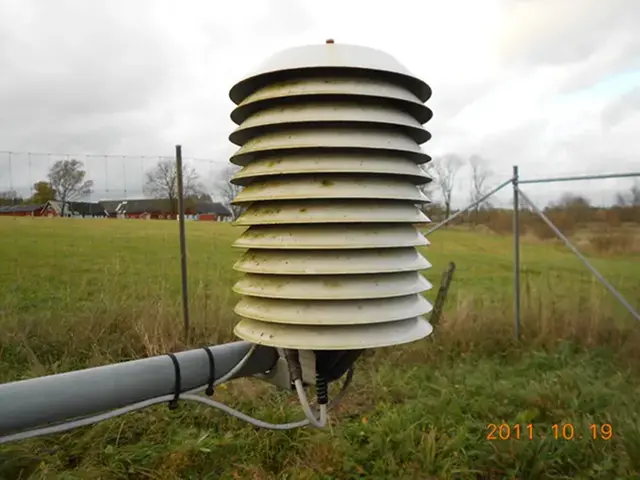 En av SMHIs automatstationer. Strålnings- och nederbördsskyddet som skyddar temperatur- och fuktighetsgivarna.