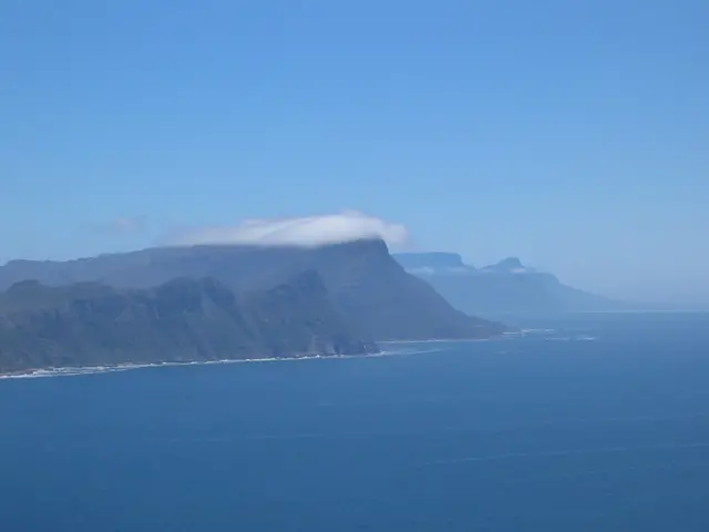 I bilden syns orografiska moln som bildats då vinden från Atlanten har tvingats upp i höjden av de höga kustbergen strax söder om Kapstaden.