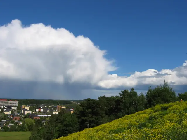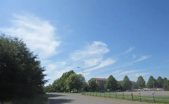 Varmluft som glider upp och bildar skidspetslikande moln över Kalmar 15 juni 2013. Fronten, i marknivå, låg då över Danmark.