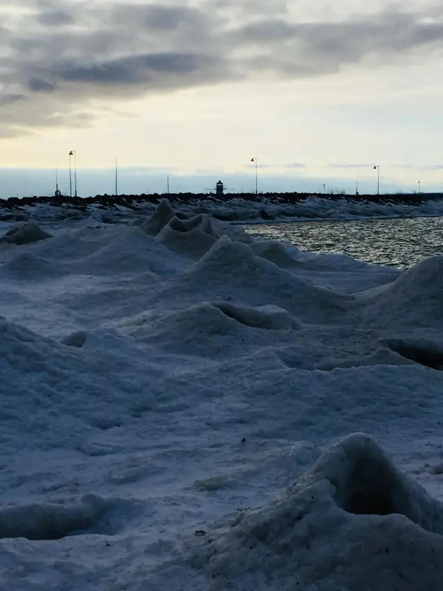 Därefter har det förmodligen kommit en kraftig vind som skapat vågor. Rörelser från vågorna hade spräckt isen lite här och där.