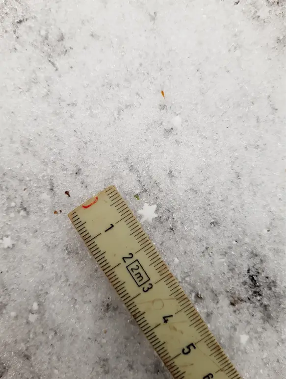 Sexuddig snöflinga. Bilden togs i Krokek utanför Norrköping klockan 13:45 den 30 januari 2022.