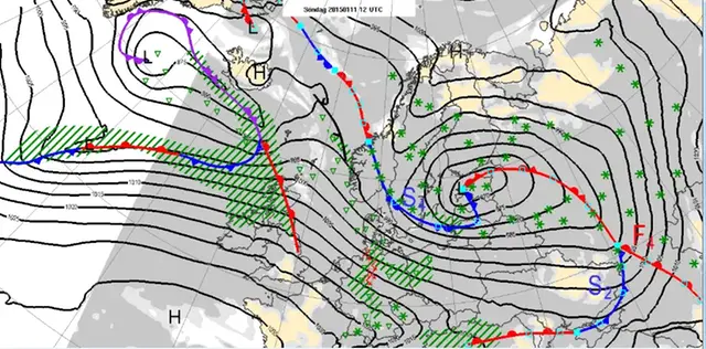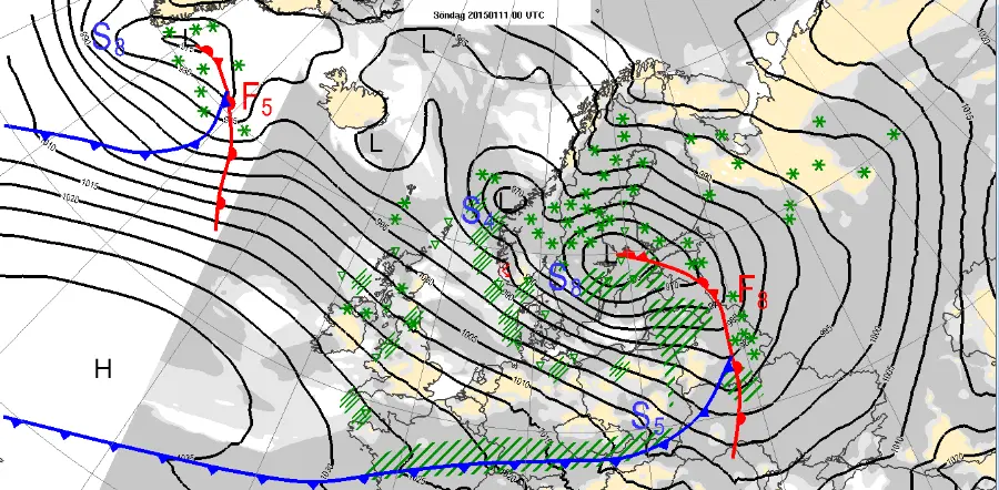 Förstora bildenVäderläget klockan 13 den 11 januari 2015.
