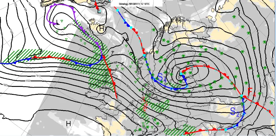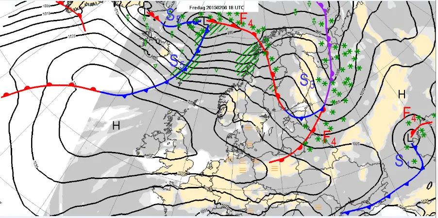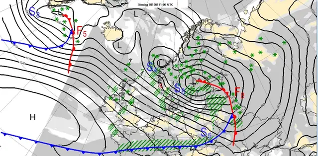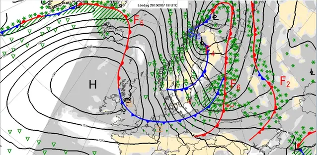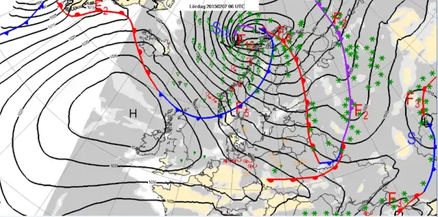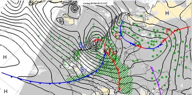 Förstora bildenVäderläget klockan 13 den 10 januari 2015.