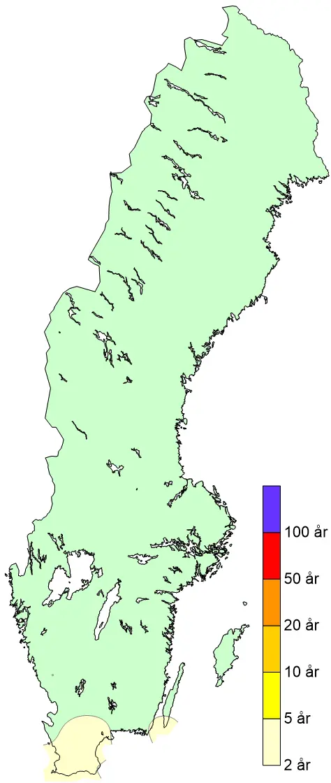 Ytterligare några stationer hade en återkomsttid mellan 2 och 3 år.