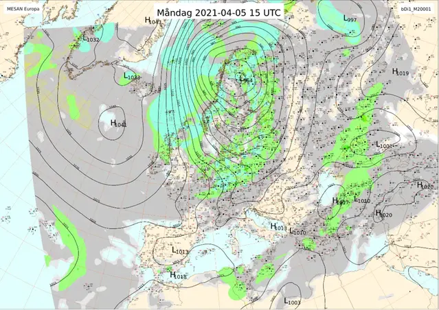 Förstora bildenAnalys av väderläget över Europa klockan 17 den 5 april 2021.