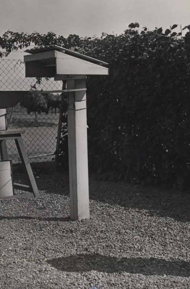Dessa så kallade termometerhuvar användes i några fall ännu under 1960-talet. Som framgår av bilden så skyddade inte huvarna speciellt bra mot reflekterad strålning underifrån. Därför kunde den uppmätta temperaturen i extremfall bli omkring fem grader för hög. Bilden visar en station i Norrköping år 1936.