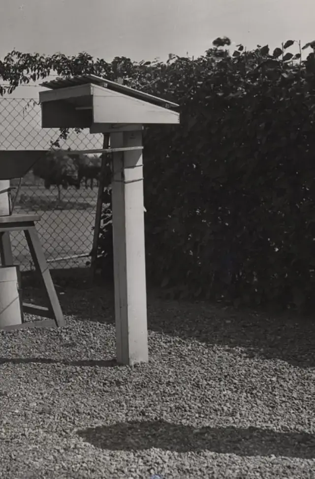 Dessa så kallade termometerhuvar användes i några fall ännu under 1960-talet. Som framgår av bilden så skyddade inte huvarna speciellt bra mot reflekterad strålning underifrån. Därför kunde den uppmätta temperaturen i extremfall bli omkring fem grader för hög. Bilden visar en station i Norrköping år 1936.
