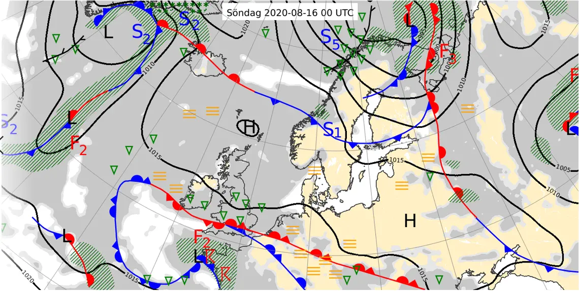 Förstora bildenVäderläget klockan 02 den 16 augusti 2020.
