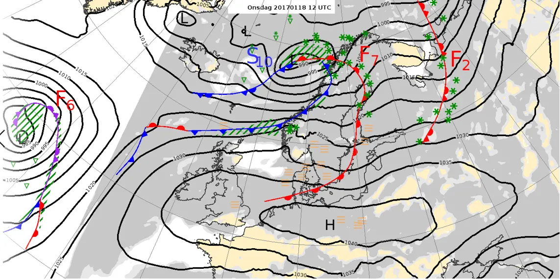 Förstora bildenVäderläget klockan 13 den 18 januari 2017.
