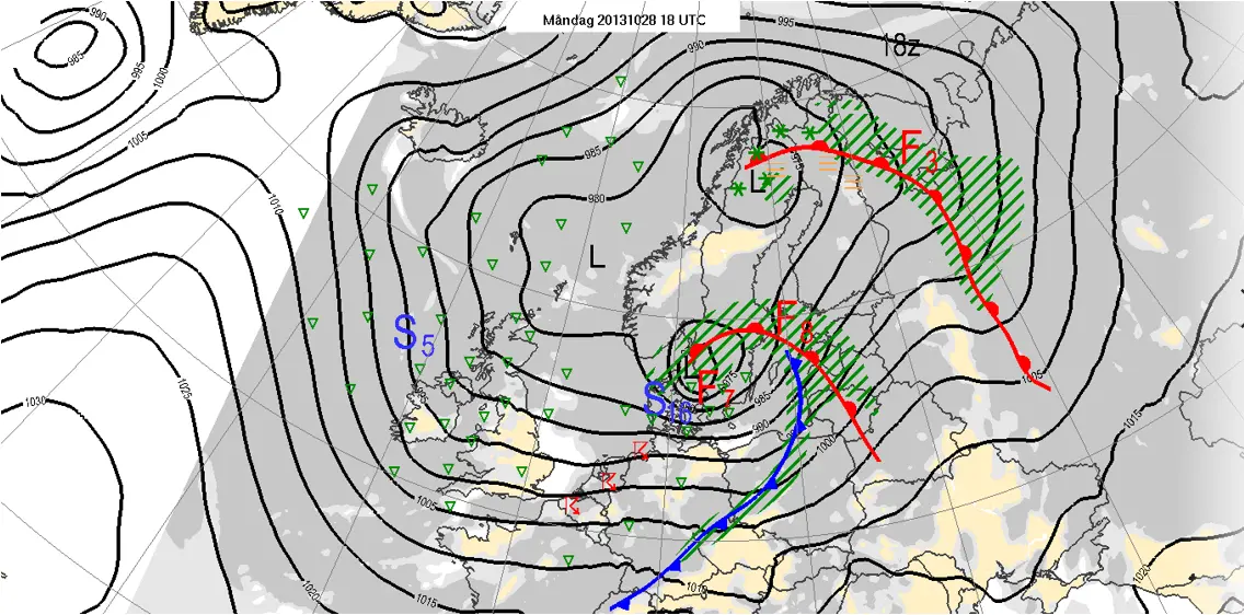 Förstora bildenVäderläget klockan 19 den 28 oktober 2013.