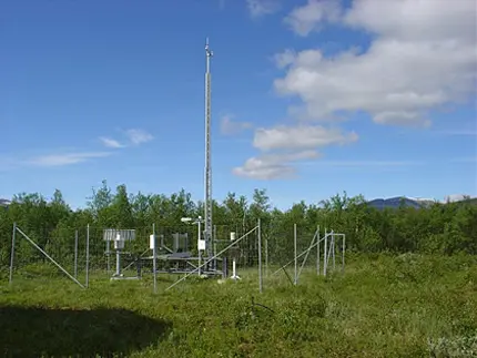 Förstora bildenSMHIs automatstation i Nikkaluokta. Stationen är känd för sina låga temperaturer vintertid.