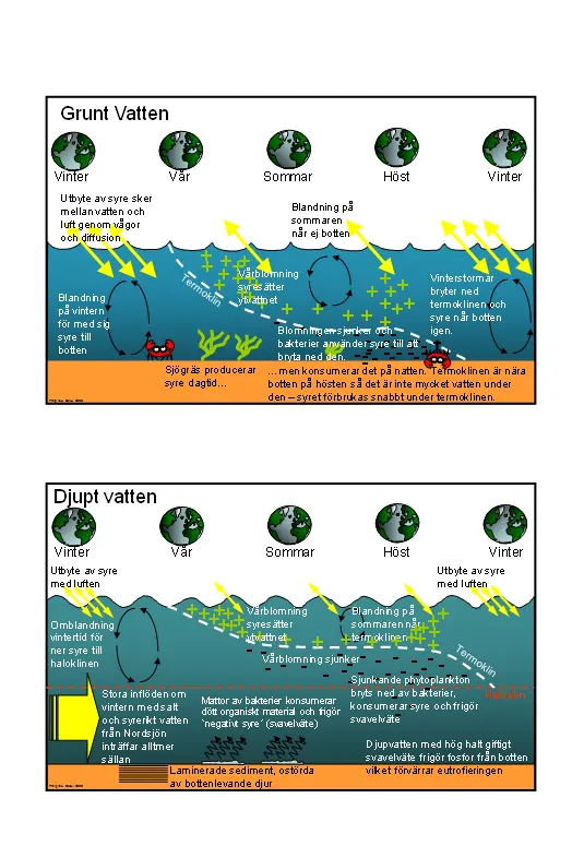 Den syrefria miljön orsakar även att fosfat från sedimentet frigörs och förs upp till ytan som kommer cyanobakterierna tillgodo igen. Det blir som en spiraleffekt.