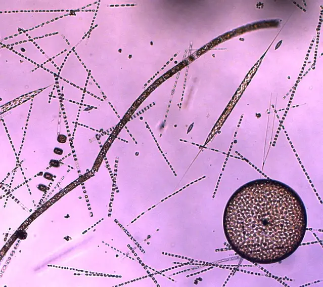 Kiselalgerna (mikroalger) Skeletonema marinoi, Rhizosolenia setigera, Odontella aurita och Coscinodiscus sp.