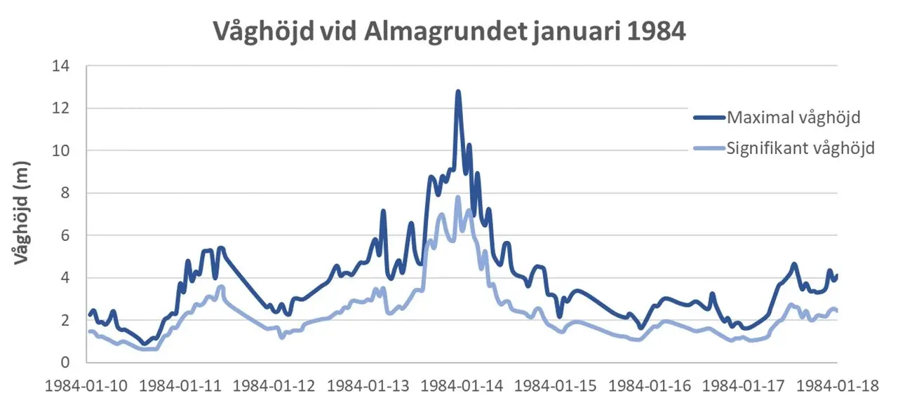 De hitintills högsta uppmätta vattenstånden längs Bottenvikens och delar av Bottenhavets kuster inträffade den 13 – 14 januari 1984. Vägar stängdes av och källare översvämmades men konsekvenserna blev relativt begränsade trots rekordhöga vattenstånd och vågor.
