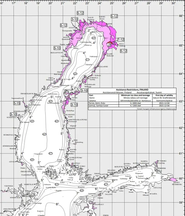Isrestriktioner utfärdas av Sjöfartsverket för att endast tillåta fartyg med en viss isklass och storlek ha rätt till assistans, vid färd till en hamn med isrestriktioner. Detta för att undvika att för små fartyg med en för låg isklass fastnar i isen och skapar stort assistansbehov. Därmed säkrar man att isbrytarresurserna räcker till för att hålla handelsjöfarten igång under isvintern. I takt med att isen växer till höjs ofta isrestriktionerna för en viss hamn under vinterns lopp.