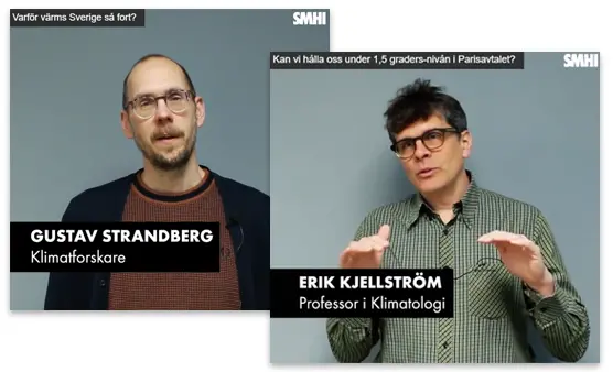 På sidorna om klimatläget finns ett antal filmer där SMHIs experter berättar mer om klimatförändringen och hur vi påverkas.