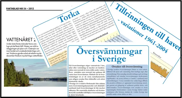 SMHI publicerade under perioden 1994-2012 faktablad inom ämnesområdena meteorologi, hydrologi och oceanografi. Här finns en lista på de hydrologiska faktabladen. Utgivningsår anges inom parentes. De flesta går att ladda ner som pdf, annars kan de beställas via Kundtjänst.