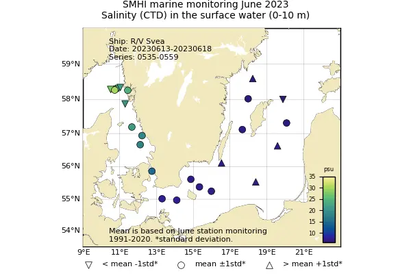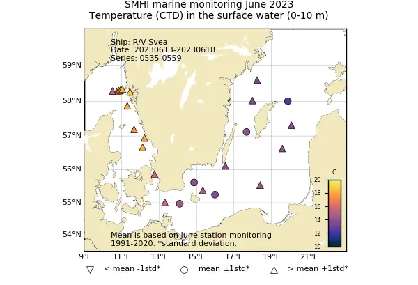 Under perioden 2023-06-13 till 2023-06-19 var SMHI ute till havs med fartyget Svea för att undersöka tillståndet i våra hav. Den marina miljöövervakningen sker i samverkan med och på uppdrag av Havs- och Vattenmyndigheten (HaV).