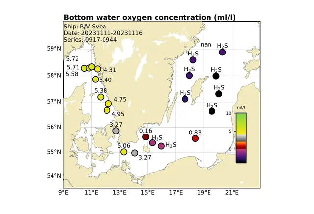 Under perioden 2023-11-11 till 2023-11-16 var SMHI ute till havs med fartyget Svea för att undersöka tillståndet i våra hav. Den marina miljöövervakningen sker i samverkan med och på uppdrag av Havs- och Vattenmyndigheten (HaV).