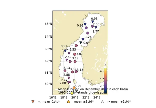 Avkylningen av ytvattnet fortsatte i december och var i många områden lägre än normalt.