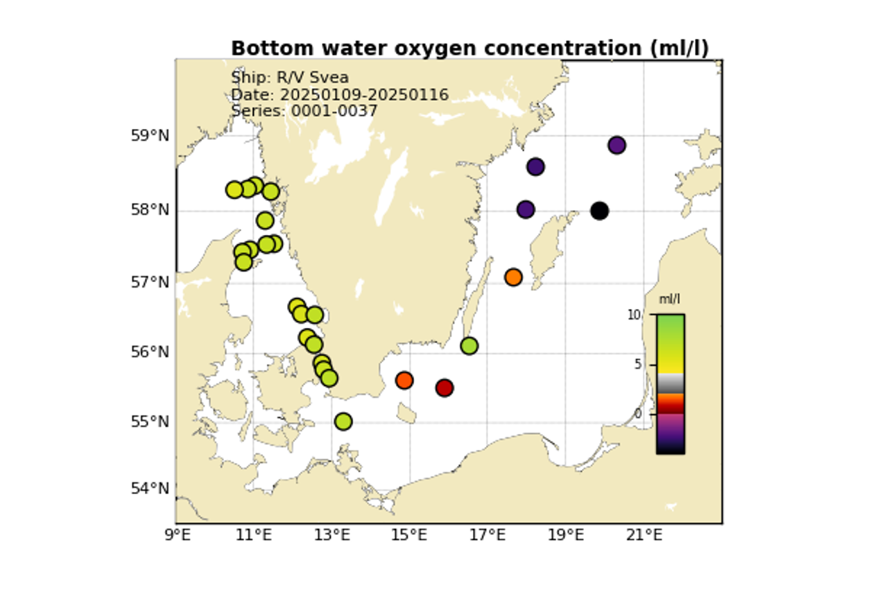 Under perioden 2025-01-09 till 2025-01-16 var SMHI ute till havs med fartyget Svea för att undersöka tillståndet i våra hav. Den marina miljöövervakningen sker i samverkan med och på uppdrag av Havs- och Vattenmyndigheten (HaV).