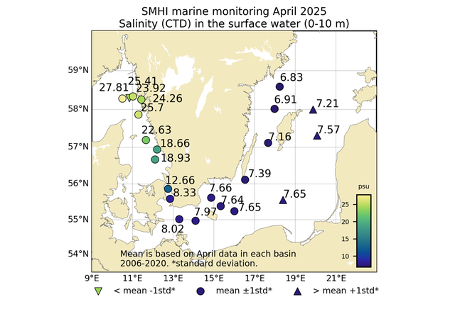 Under perioden 2025-04-07 till 2025-04-13 var SMHI ute till havs med fartyget Svea för att undersöka tillståndet i våra hav. Den marina miljöövervakningen sker i samverkan med och på uppdrag av Havs- och Vattenmyndigheten (HaV).